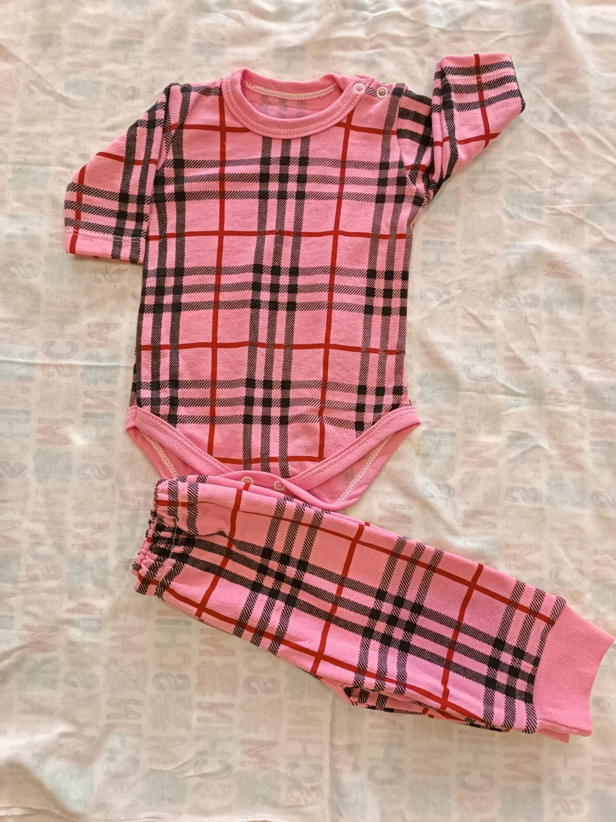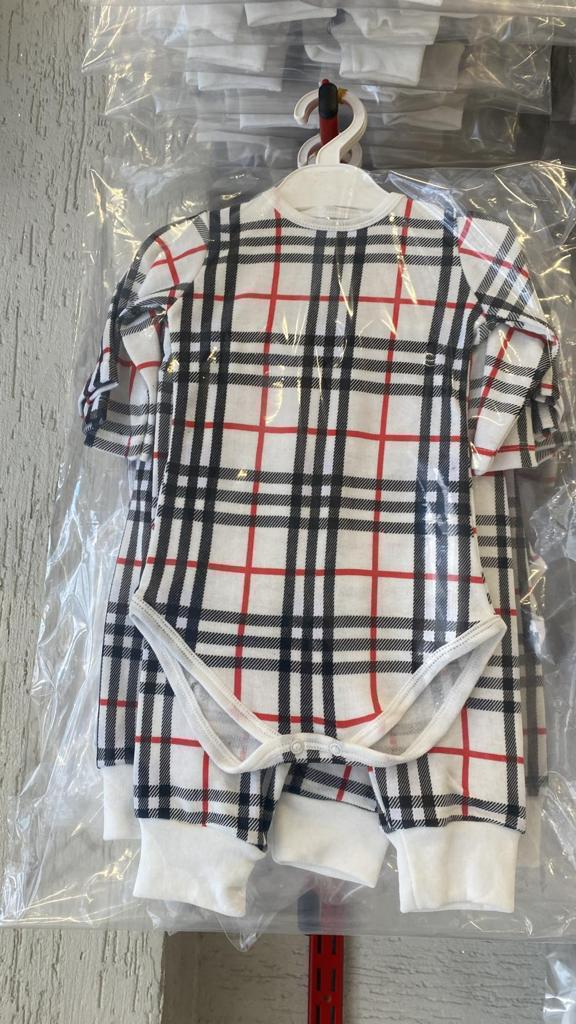 Bodysuit - One-piece bottom two piece set. Package content is 3-6-9 month size. 100% cotton. Wholesale product. Price is for a 3-piece pack. There are 4 color options: beige, blue, pink and white. All will be sold together.